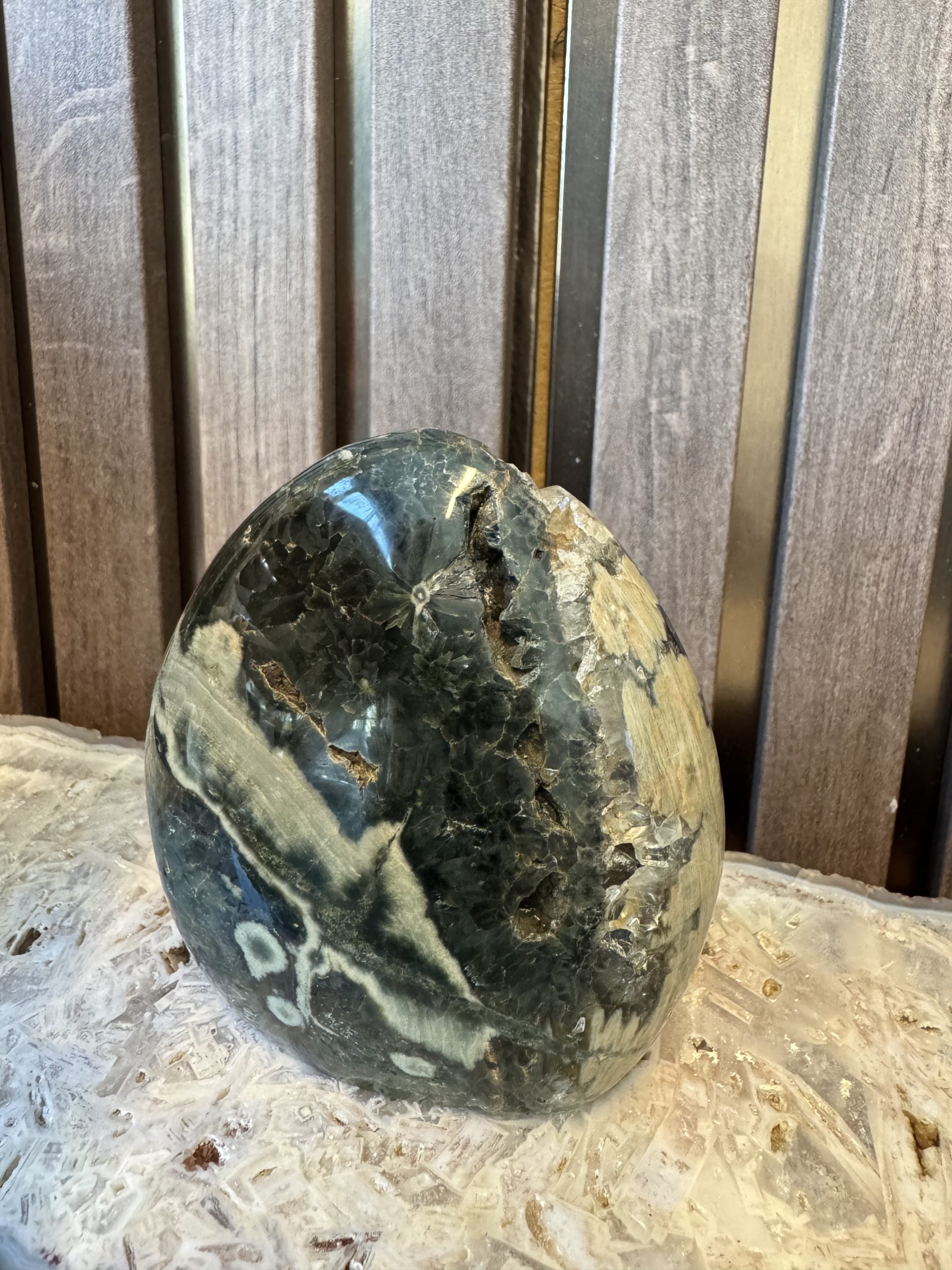Deze steen wordt vaak geassocieerd met balans, stabiliteit en verbinding met de natuur. Het kan een kalmerende en aardende sfeer brengen in je omgeving. Perfect als decoratie steen, tijdens meditatie of als betekenisvol cadeau voor iemand die van natuurlijke energie en schoonheid houdt.
