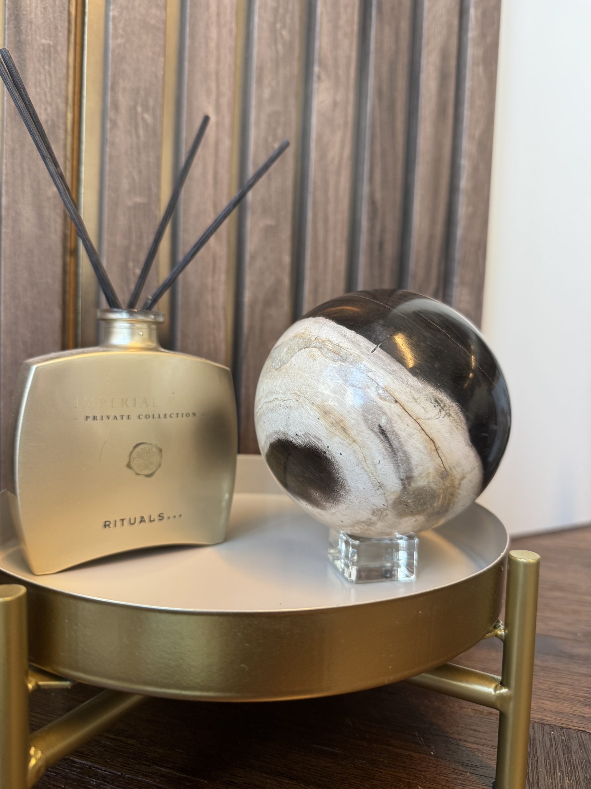 Je houdt letterlijk de geschiedenis van de aarde vast. De jaarringen en houtstructuren zijn vaak nog prachtig zichtbaar in het steen. De ronde vorm verspreidt de energie gelijkmatig naar alle kanten en staat voor eenheid en oneindigheid.