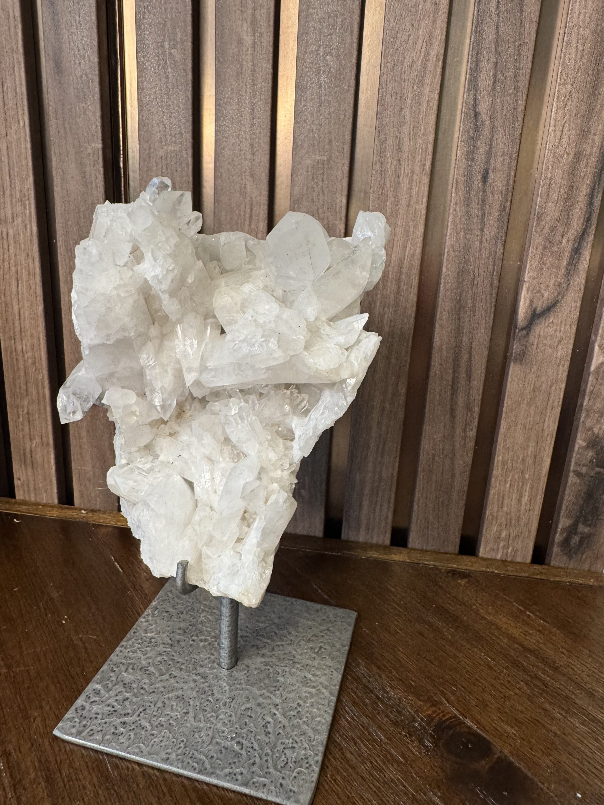 Bergkristal is een van de meest pure en heldere mineralen. De perfect gevormde, natuurlijke kristalpunten trekken onmiddellijk de aandacht en voegen een element van natuurlijke kunst toe aan elke kamer.