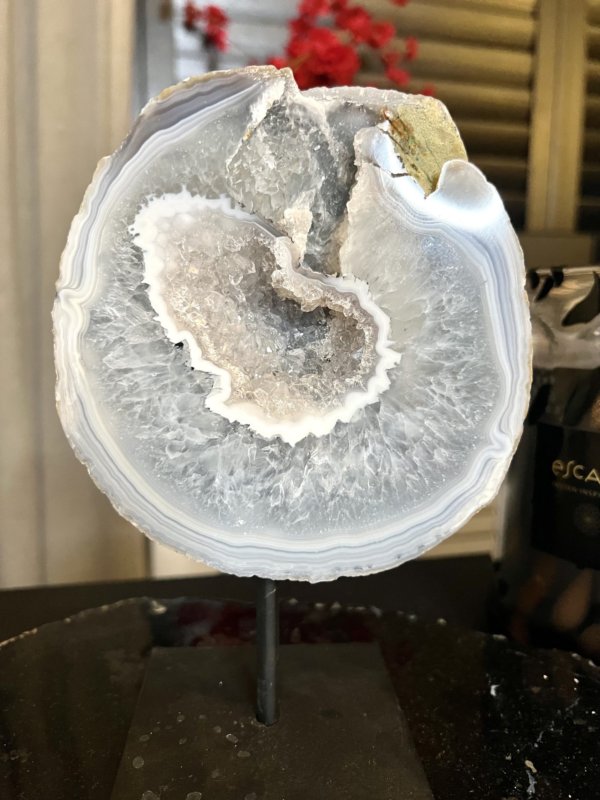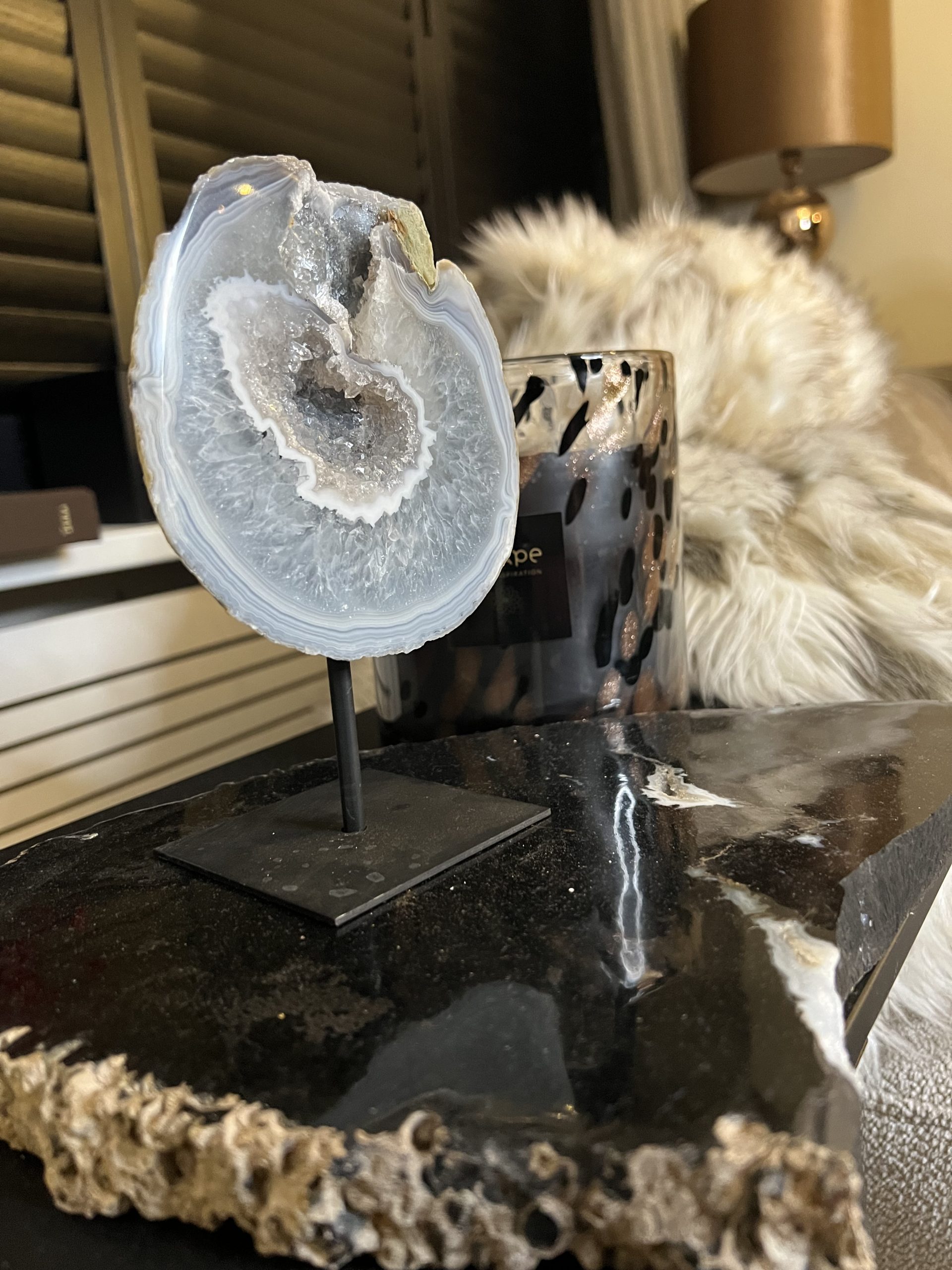 Agaat staat bekend als de steen van aarding en stabiliteit. Het brengt de emotionele, fysieke en intellectuele energie in balans. Door een agaat in je leefruimte te plaatsen, creëer je een omgeving die rust en evenwicht uitstraalt: