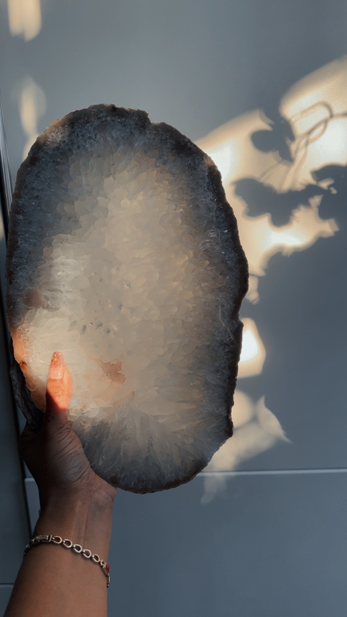 De prachtige kristalstructuren, kleurbanden en vaak de glinsterende “drusy” (kristalletjes) in het kwarts trekken direct de aandacht.