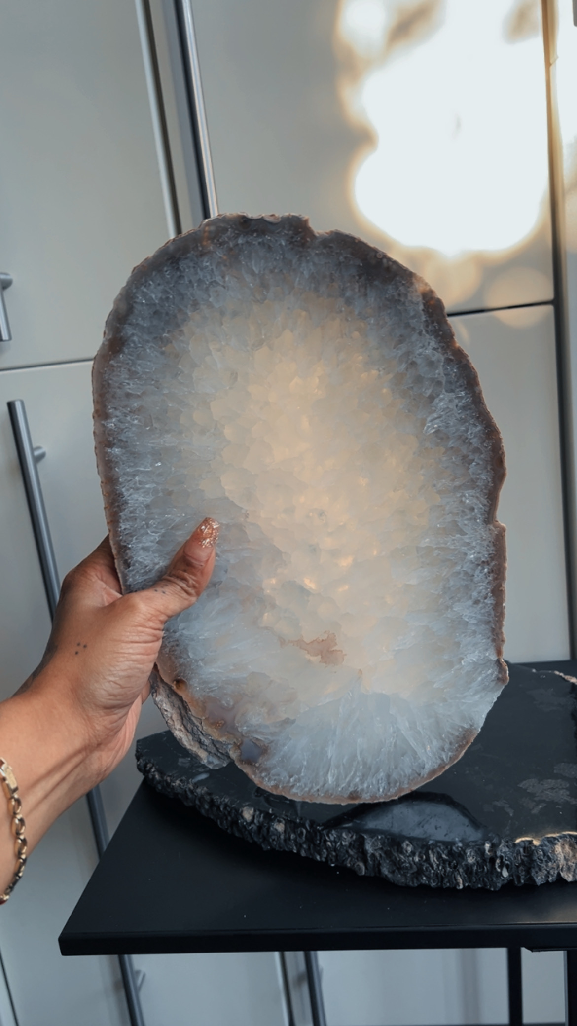 Een XL agaat dienblad is de ultieme combinatie van natuurlijke kunst, luxe en functionele energie. Waar een kleine agaat schijf subtiel is, maakt een XL dienblad een krachtig statement in je interieur.