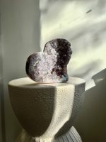 De hartvorm is een universeel symbool van liefde, compassie en emotie. Door de amethist in deze vorm te slijpen, worden de kalmerende en spirituele eigenschappen van de steen gecombineerd met de energie van liefde. Het kan een perfect cadeau zijn om genegenheid te tonen of om jezelf te herinneren aan zelfliefde.