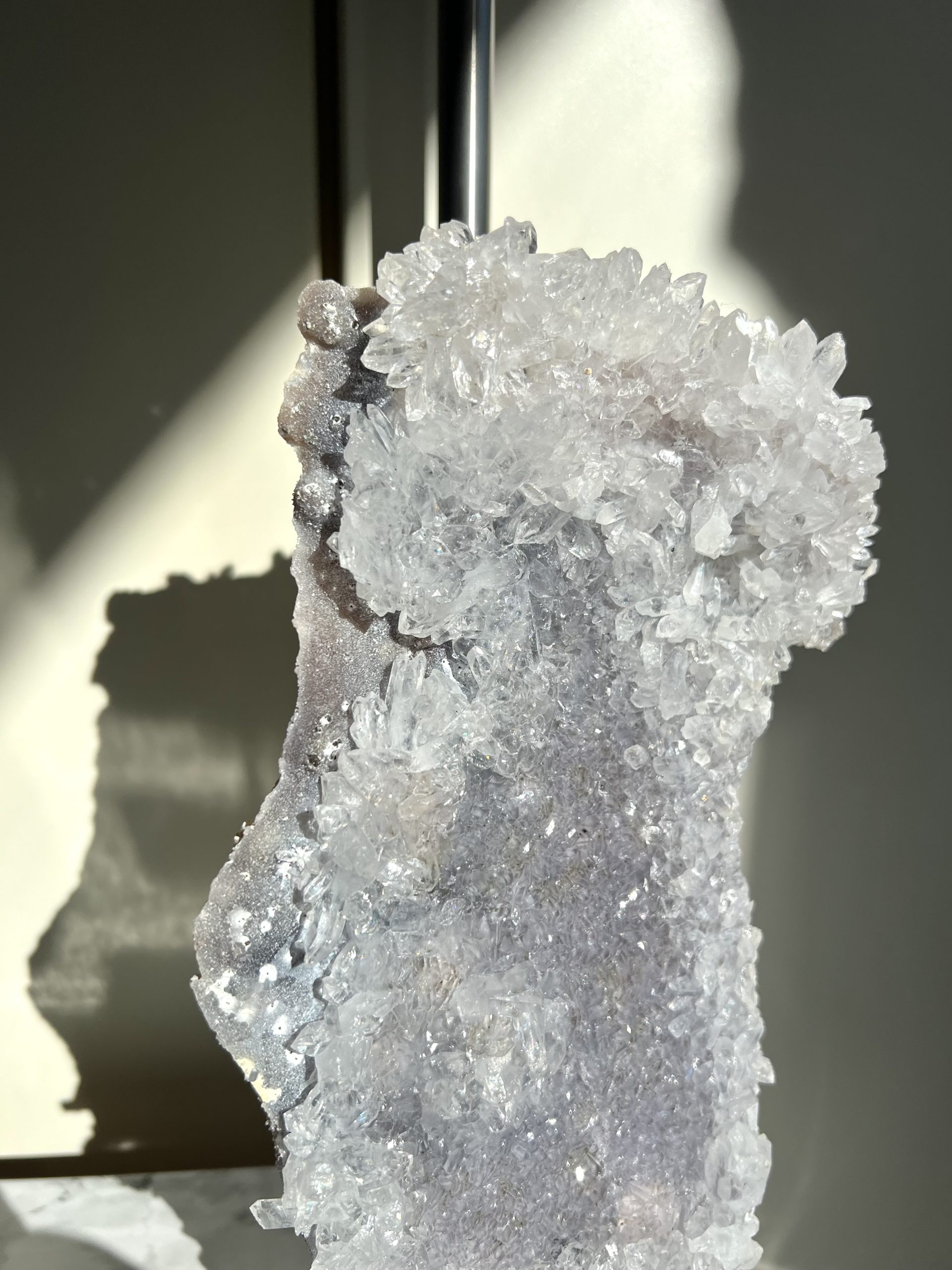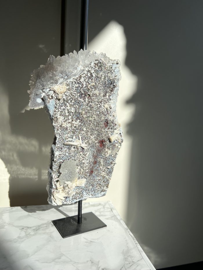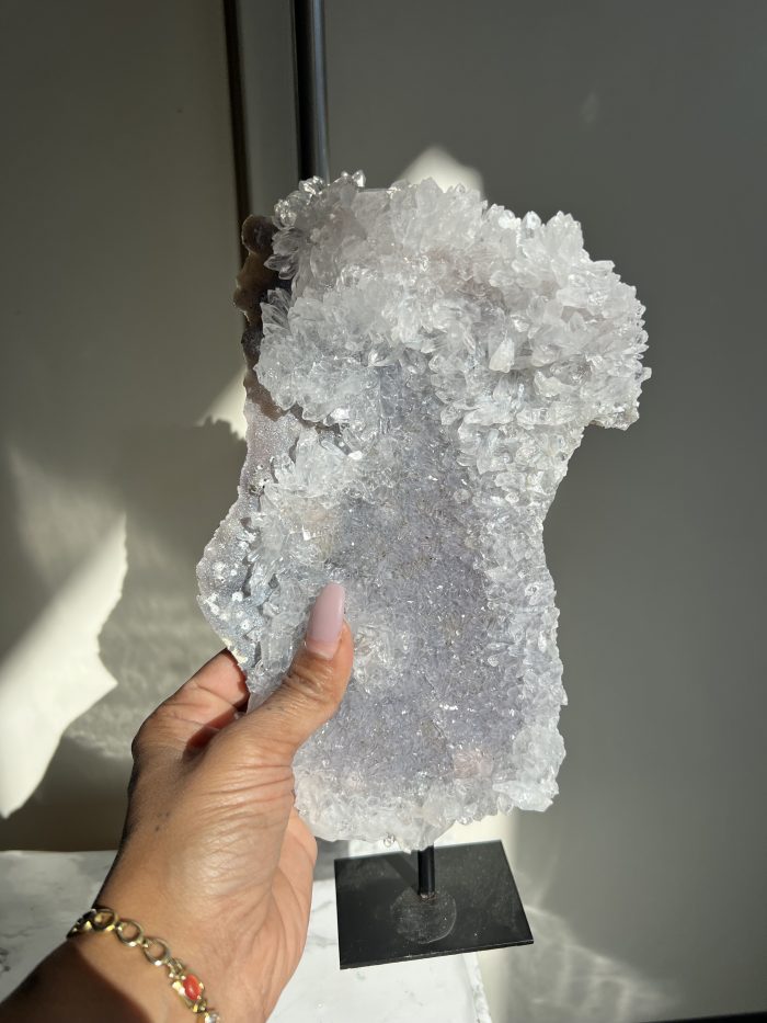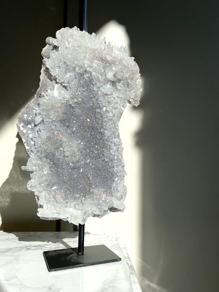 - Intuïtie en Droomwerk: Het verhoogt het spirituele bewustzijn en kan intuïtie versterken, waardoor het een perfecte aanvulling is voor meditatie- of leeshoeken. Kortom, je koopt dit stuk Flower Amethist op standaard omdat het een unieke esthetische blikvanger is die tegelijkertijd een gebalanceerde energie van rust én groei in je huis introduceert. Het is een investering in de schoonheid en de harmonie van je leefomgeving.