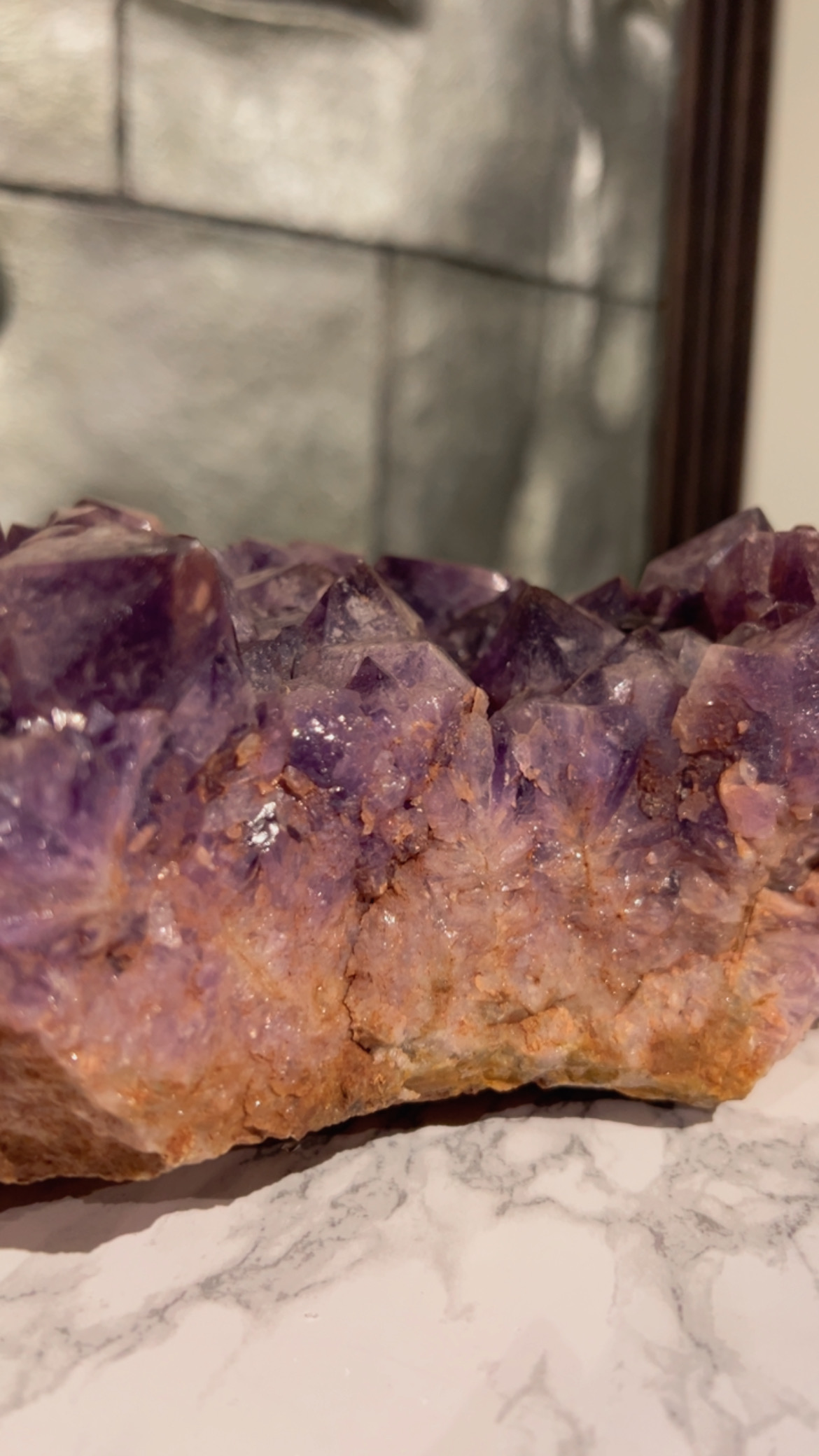 Zeldzame, gewilde Australische amethist met een scala aan spectaculaire kleuren, van rokerige/mauve tinten tot diep, levendig paars. Sommige van deze kristallen bevatten ook insluitingen van hematiet, pyriet en rutiel. De formatie van de kristallen, met hun unieke structuur, is puur kunst uit de natuur. Het is een uniek statement piece dat de schoonheid en het wonder van de natuur in huis haalt.