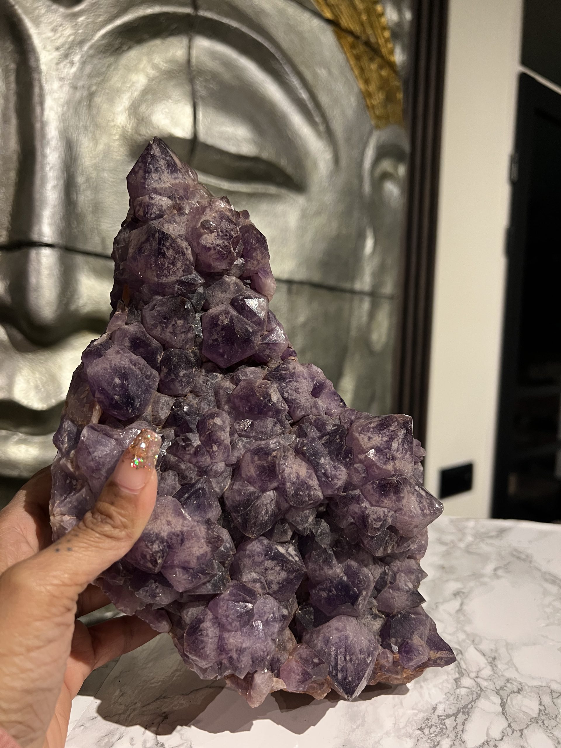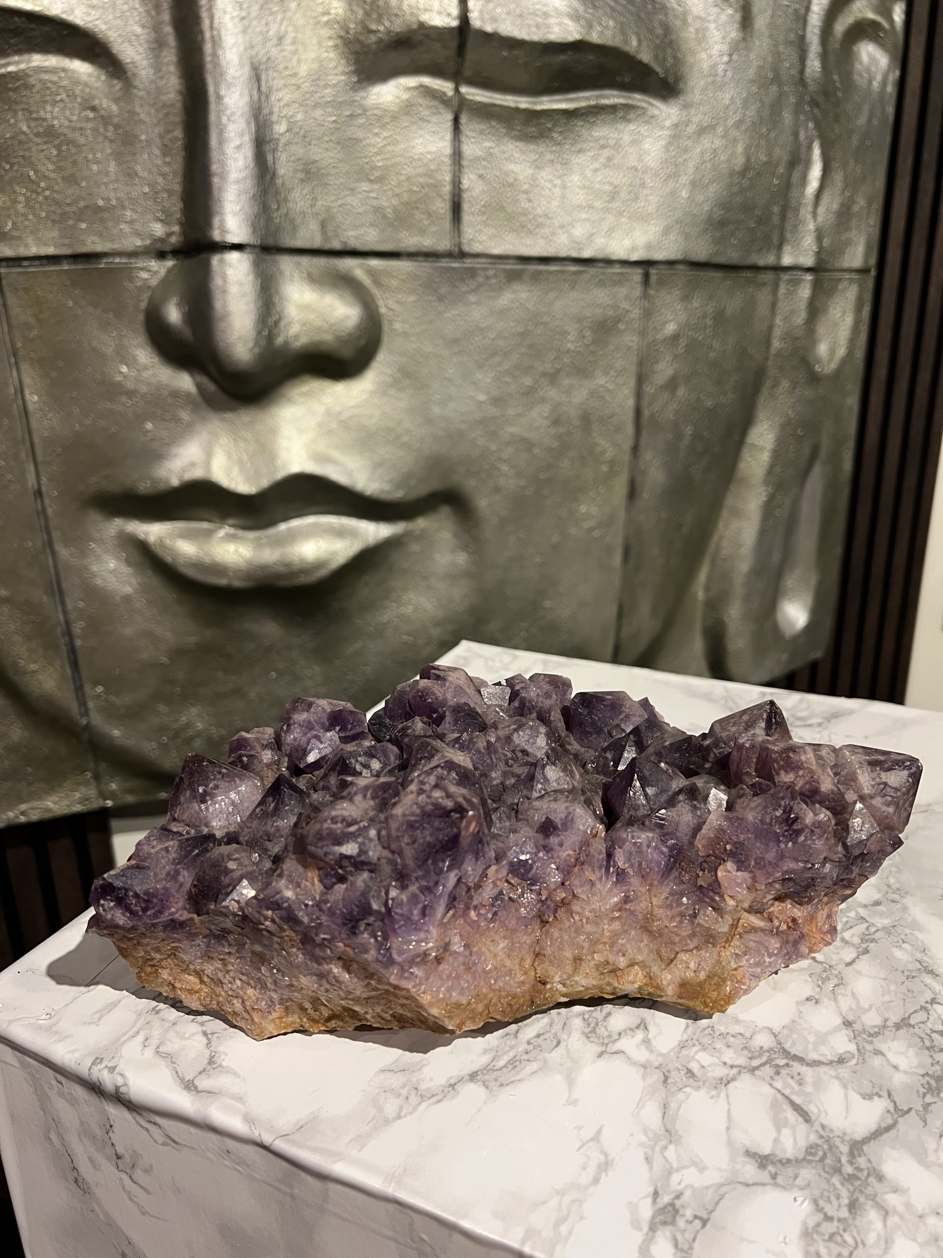 Dit stuk kan de energie in een grote kamer balanceren, waardoor een harmonieuze en positieve sfeer ontstaat voor iedereen die de ruimte betreedt. Amethist is in staat om negatieve energieën in de omgeving te absorberen en om te zetten in positieve en liefdevolle energie. Het fungeert als een schild tegen ongewenste invloeden.