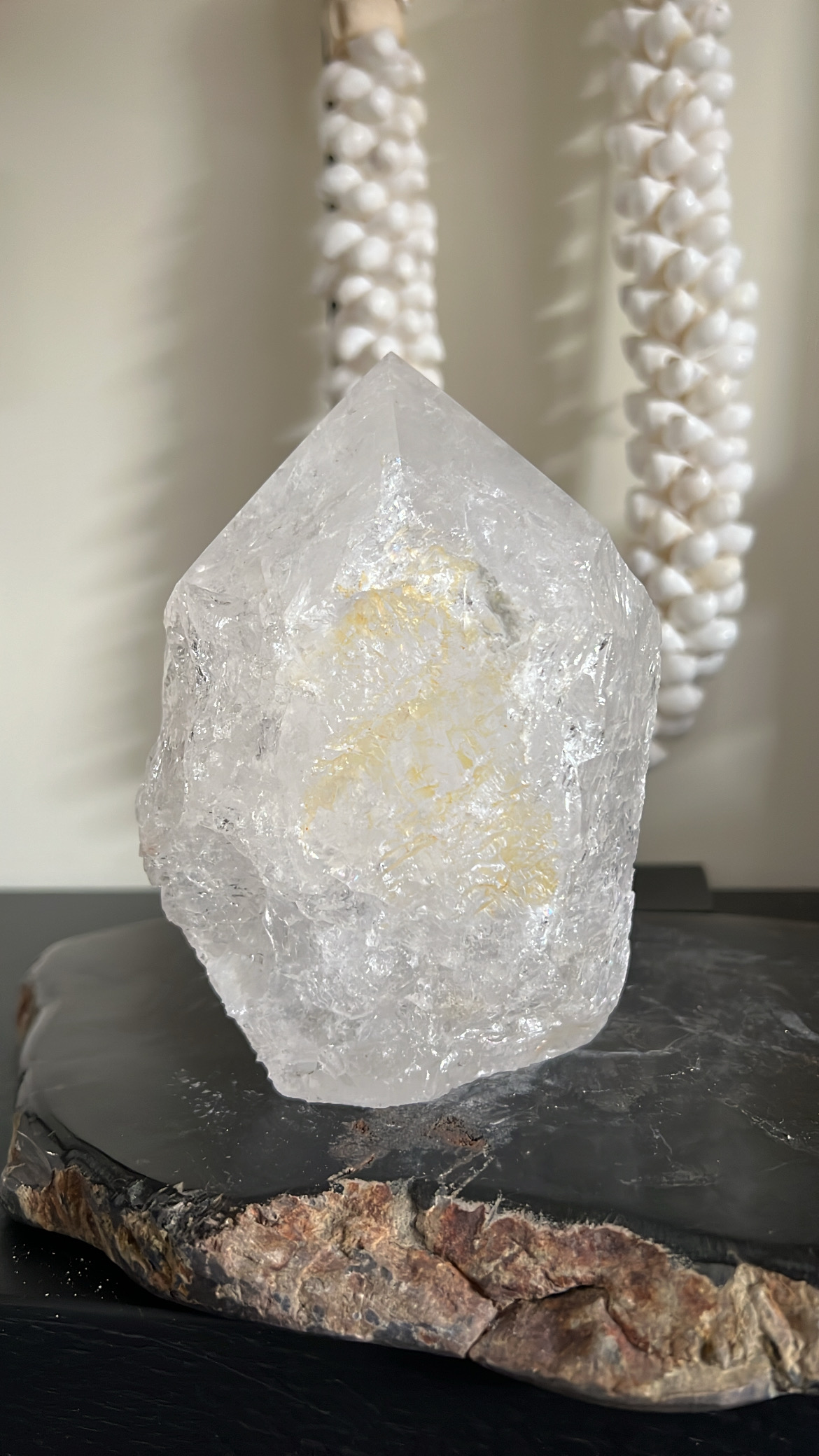 Natuurlijk kunstwerk: De kleine insluitsels, “ijsbloemen” en barstjes binnenin de bol vertellen het verhaal van de aarde. Het is een object waar je naar blijft kijken.