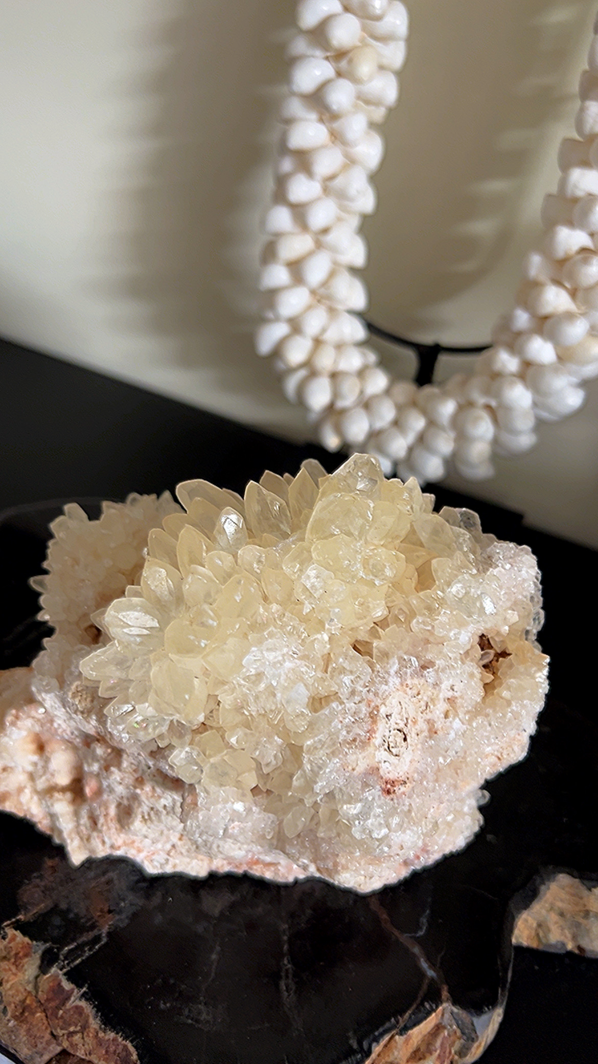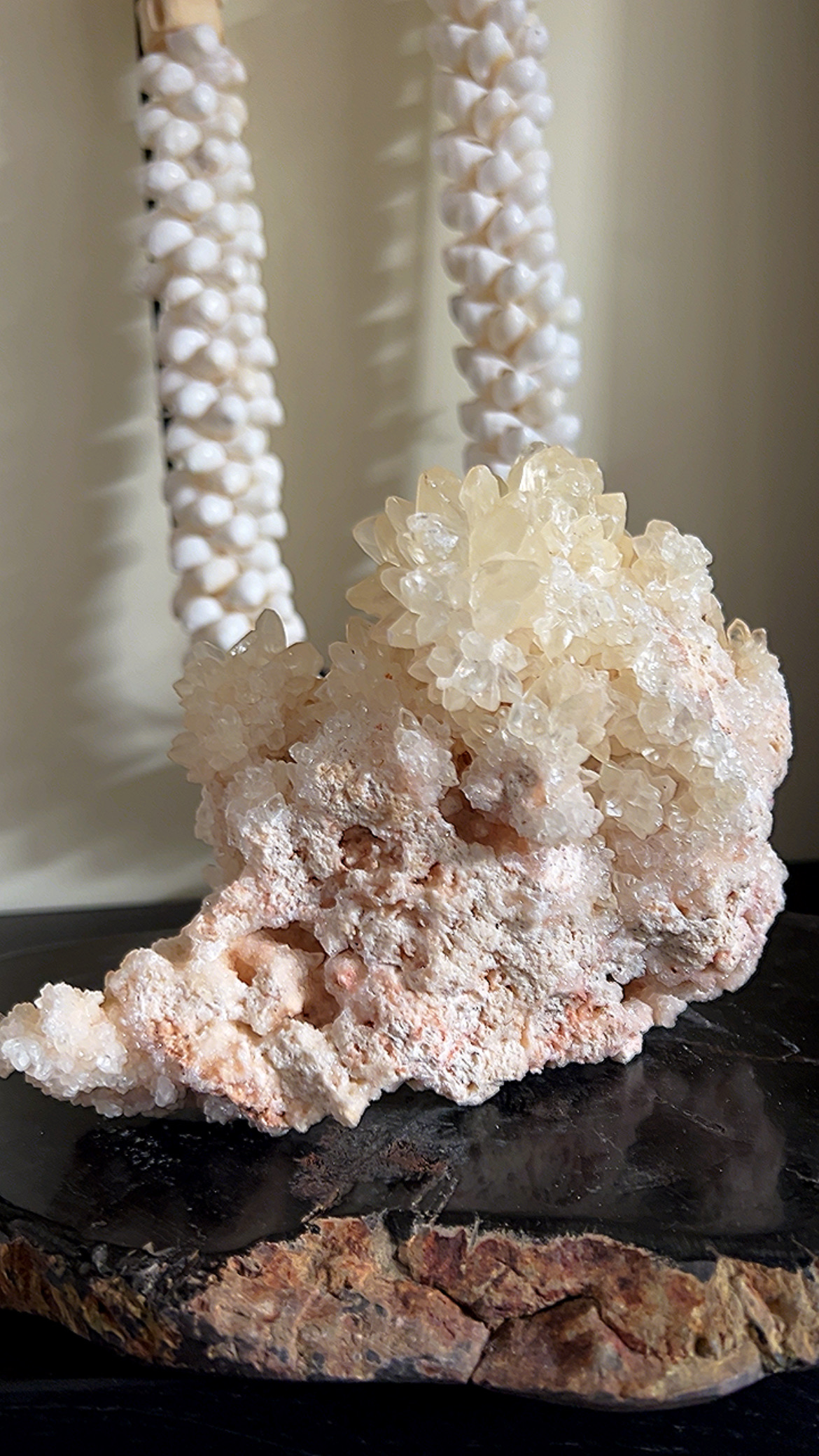 Terwijl veel kristallen strak en geometrisch zijn, brengt een calciet bloem zachtheid en ronde, natuurlijke lijnen in je interieur. Het is een sculptuur waar geen menselijke hand aan te pas is gekomen.