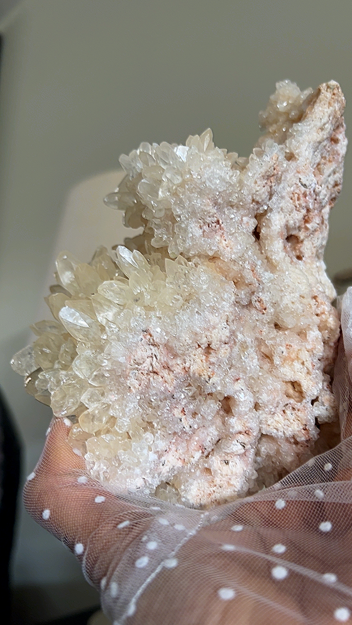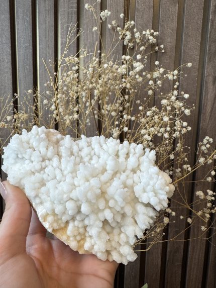 Een calciet stuk met (ook wel bekend als “bloemcalciet” of calciet “flos ferri”) is een van de meest delicate en poëtische natuurverschijnselen die je in huis kunt halen. Het ziet eruit als een boeket bloemen dat door de natuur in steen is vereeuwigd.