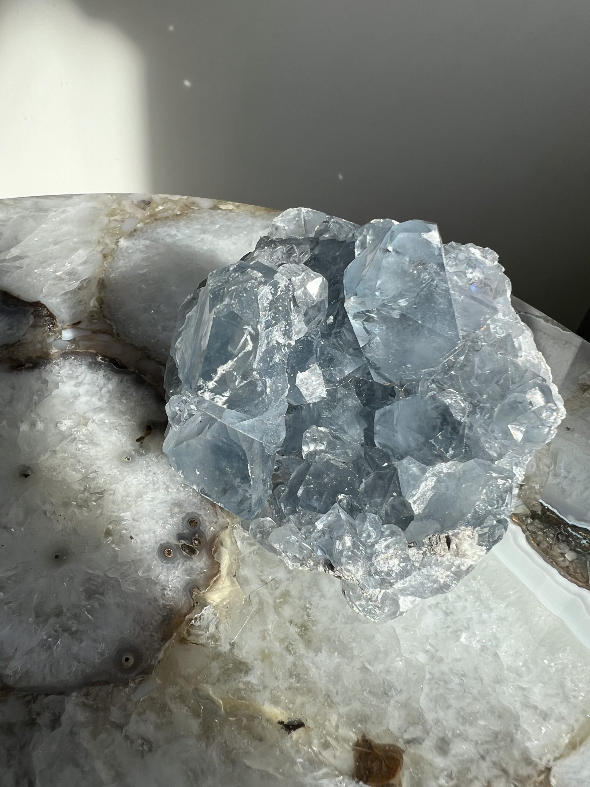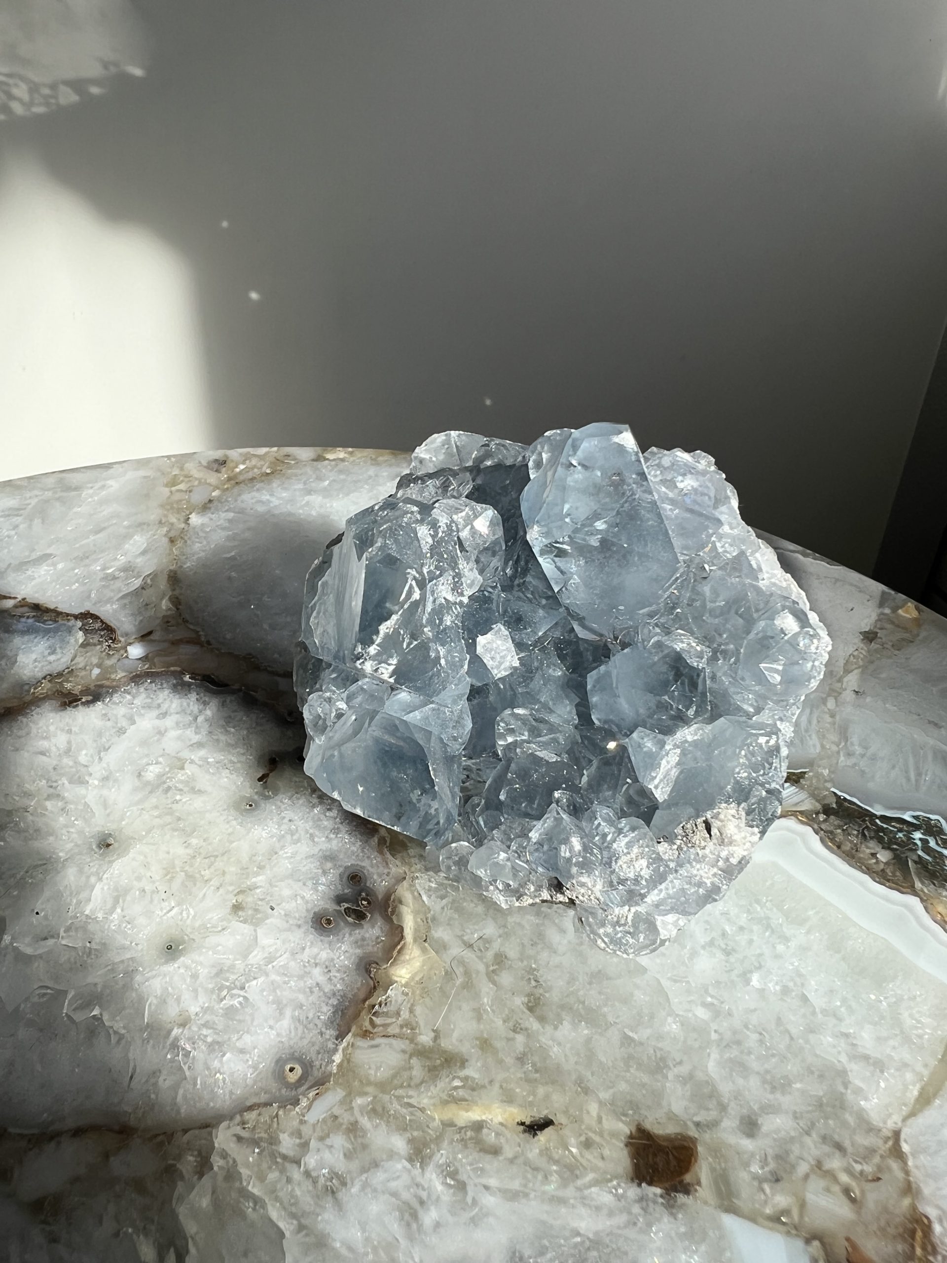 Er zijn weinig stenen die zo’n onmiddellijk gevoel van kalmte uitstralen als Celestien. Met zijn delicate, ijzig blauwe kristallen is dit cluster het ultieme decoratiestuk voor de slaapkamer of een rustige woonhoek.
