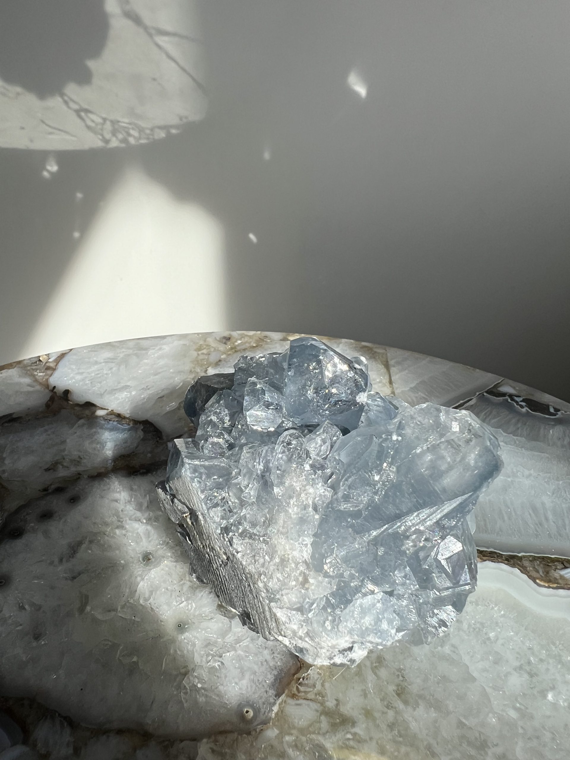 Celestien (ook wel de ‘Engelensteen’ genoemd) is een van de meest geliefde kristallen dankzij zijn dromerige, hemelblauwe kleur. zachtheid, licht en een serene atmosfeer.