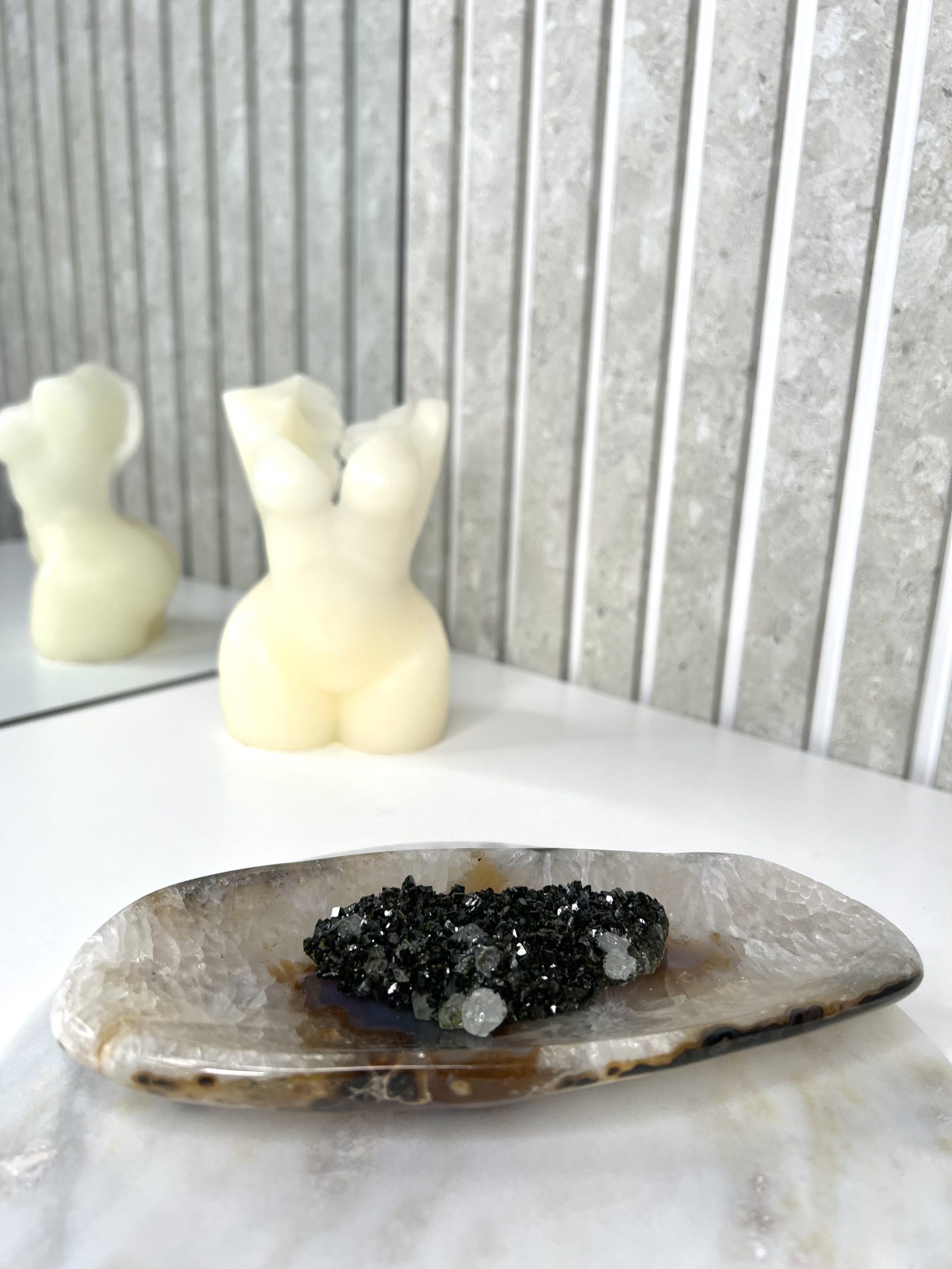 Samen creëren ze een veld van positieve transformatie, waarbij eerst de negativiteit wordt opgeruimd (Toermalijn) en de ruimte vervolgens wordt gevuld met helende energie en intenties voor groei (Epidoot en Kwarts).