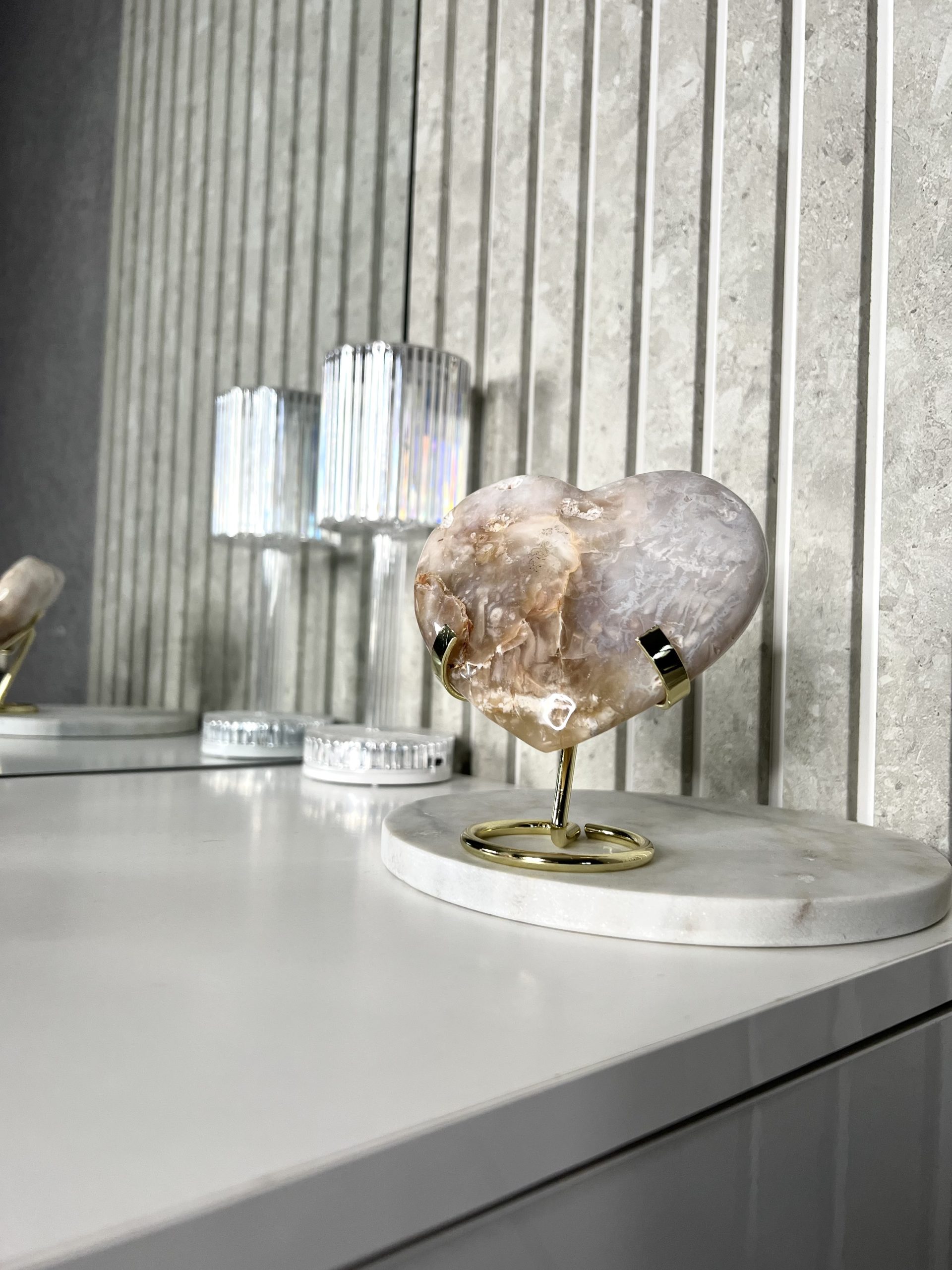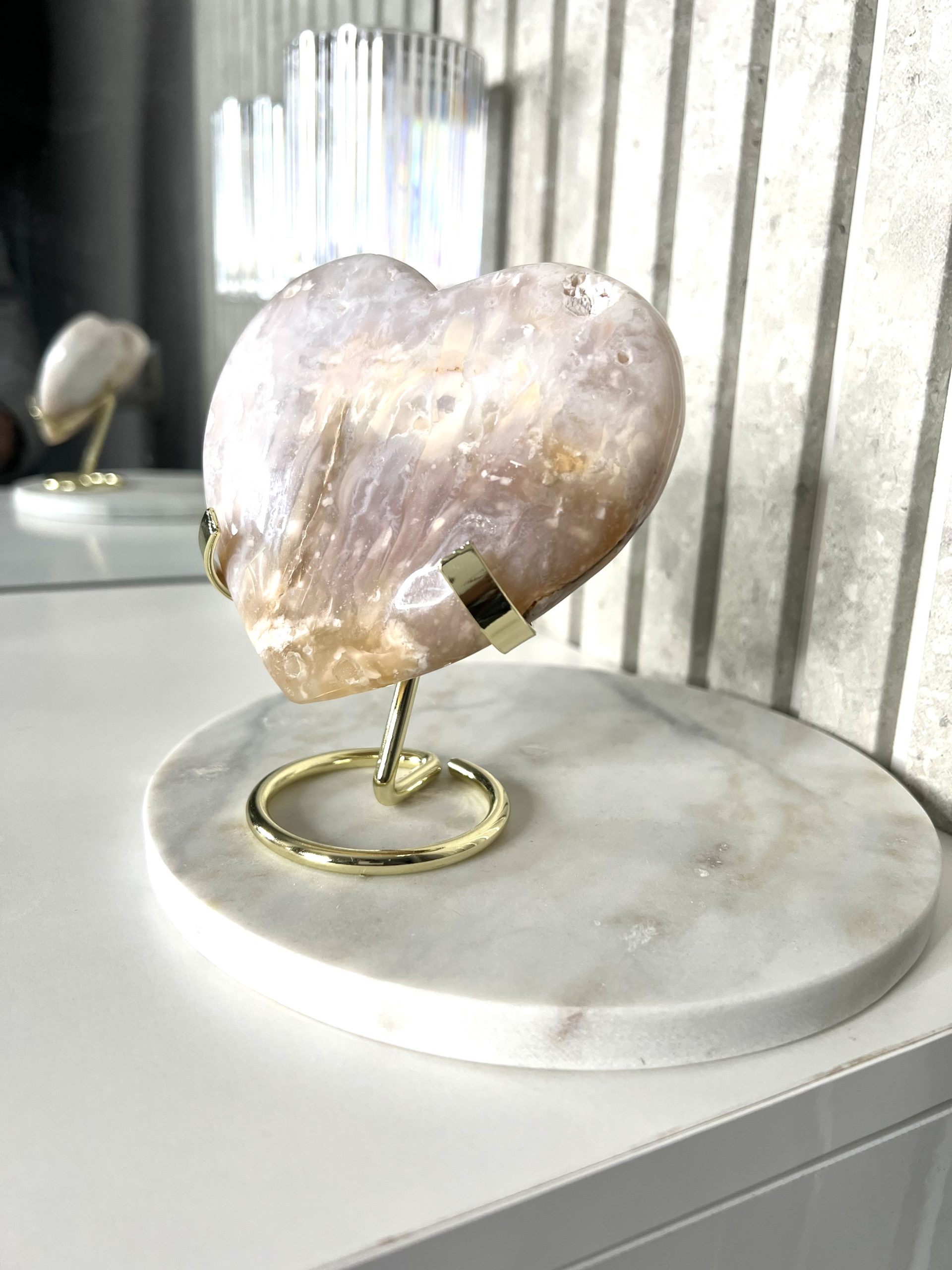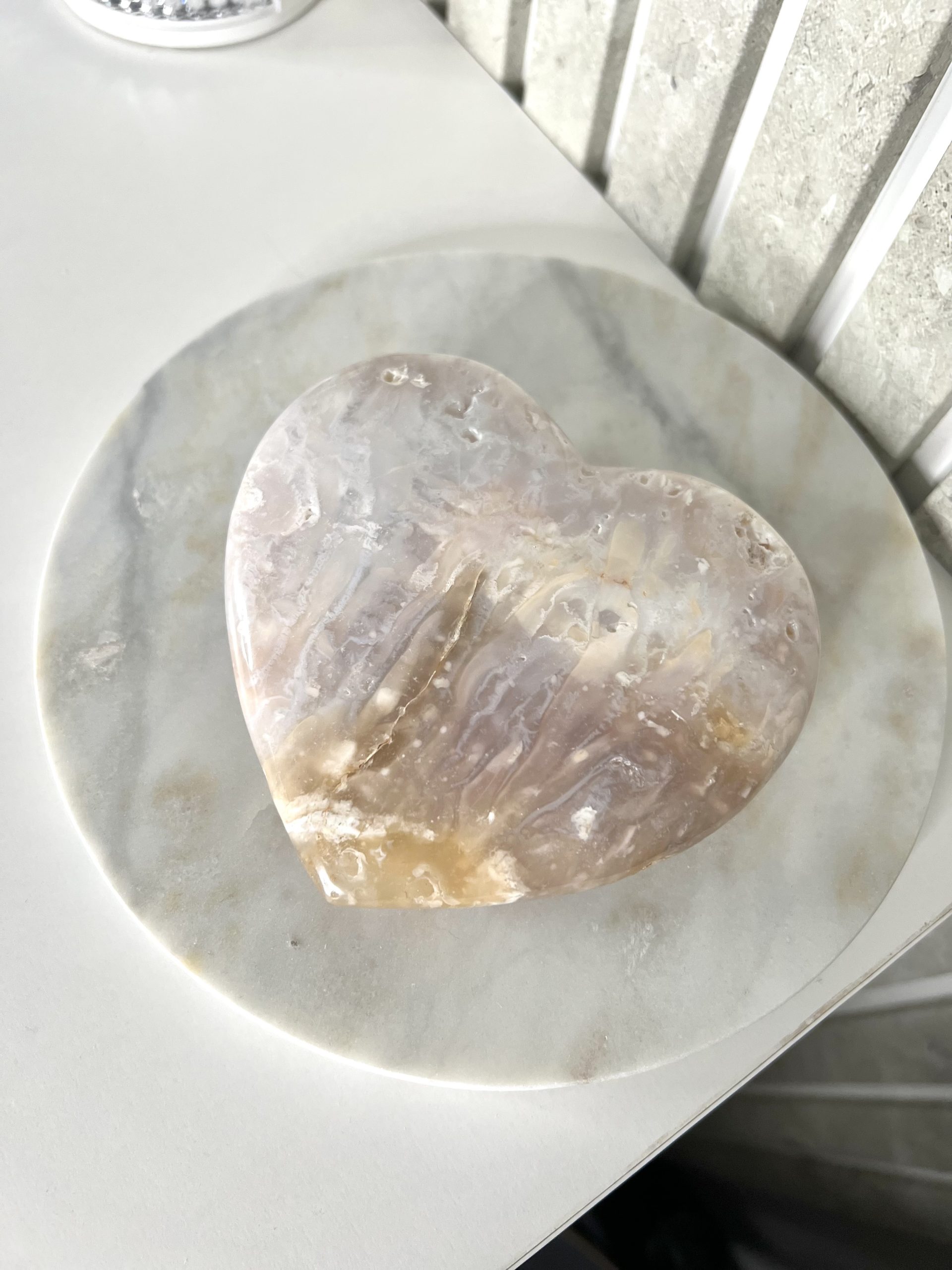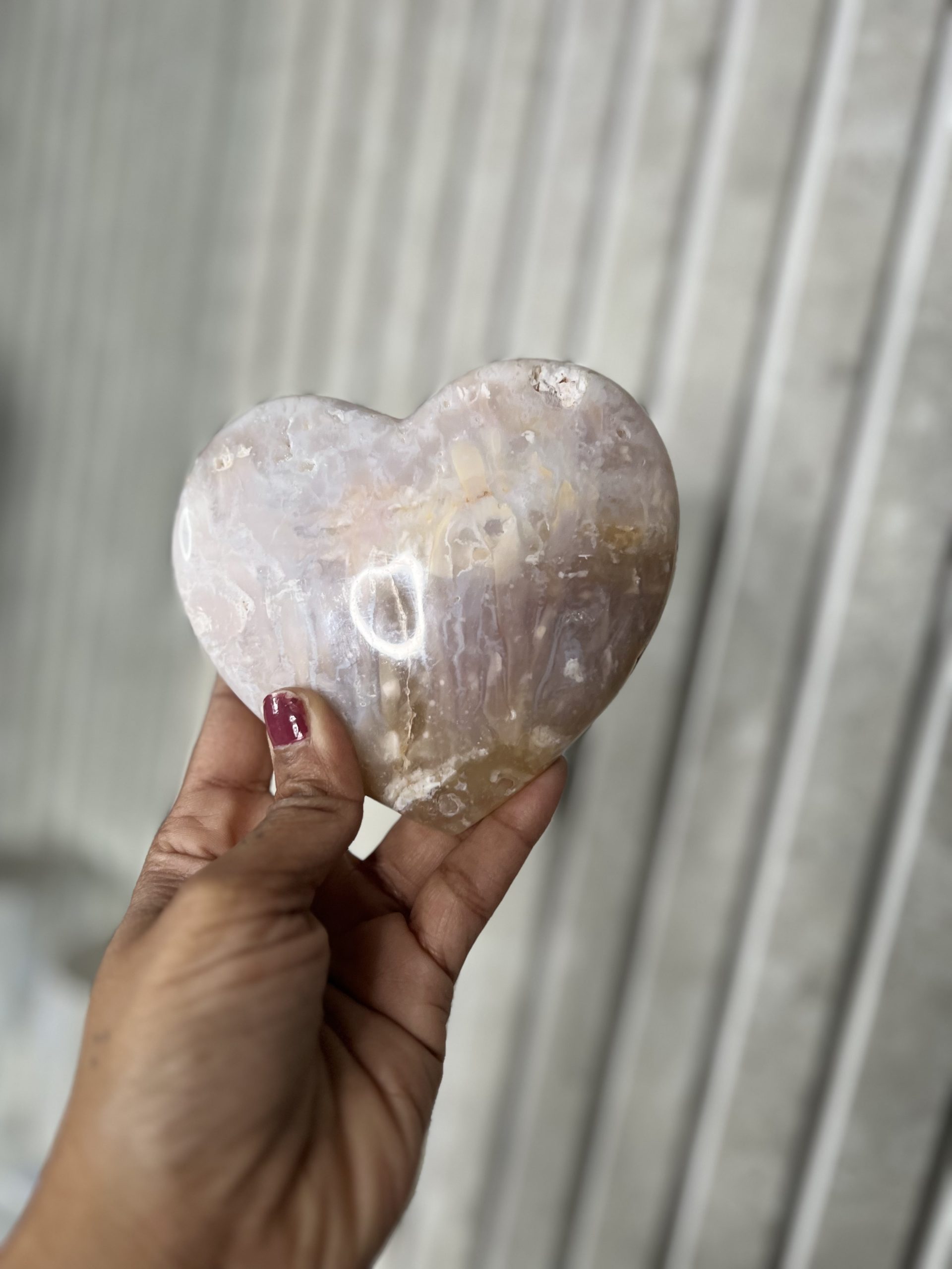 De hartvorm staat voor liefde en emotie. De zachte roze tot crèmekleurige tinten van de roze jaspis zorgen voor een rustgevend kleuraccent dat past bij veel interieurstijlen. De natuurlijke patronen maken elk hart uniek.
