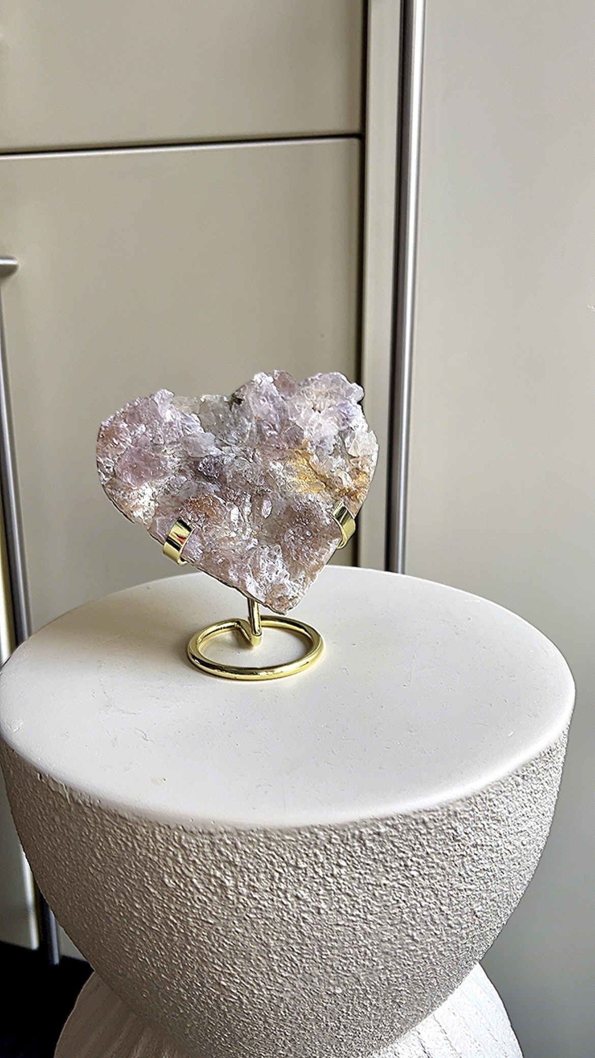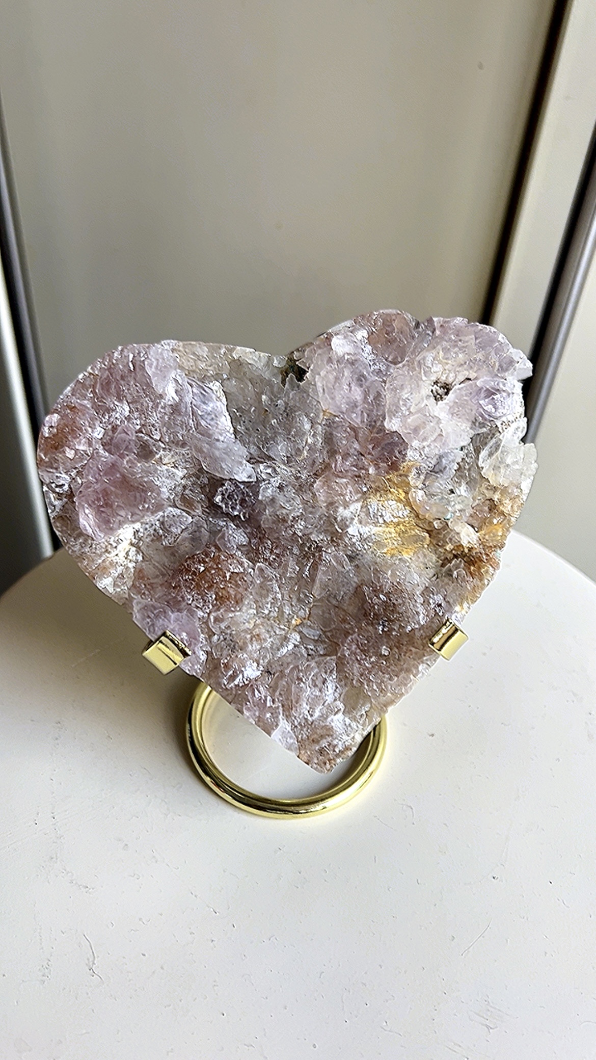 De vorm kanaliseert de gecombineerde energieën van amethist en hematoide direct naar het hartchakra. Dit bevordert zelfliefde, mededogen en harmonieuze relaties. Het is een krachtig hulpmiddel bij emotionele healing, het loslaten van oude wonden en het uitnodigen van zachtheid in je leven.
