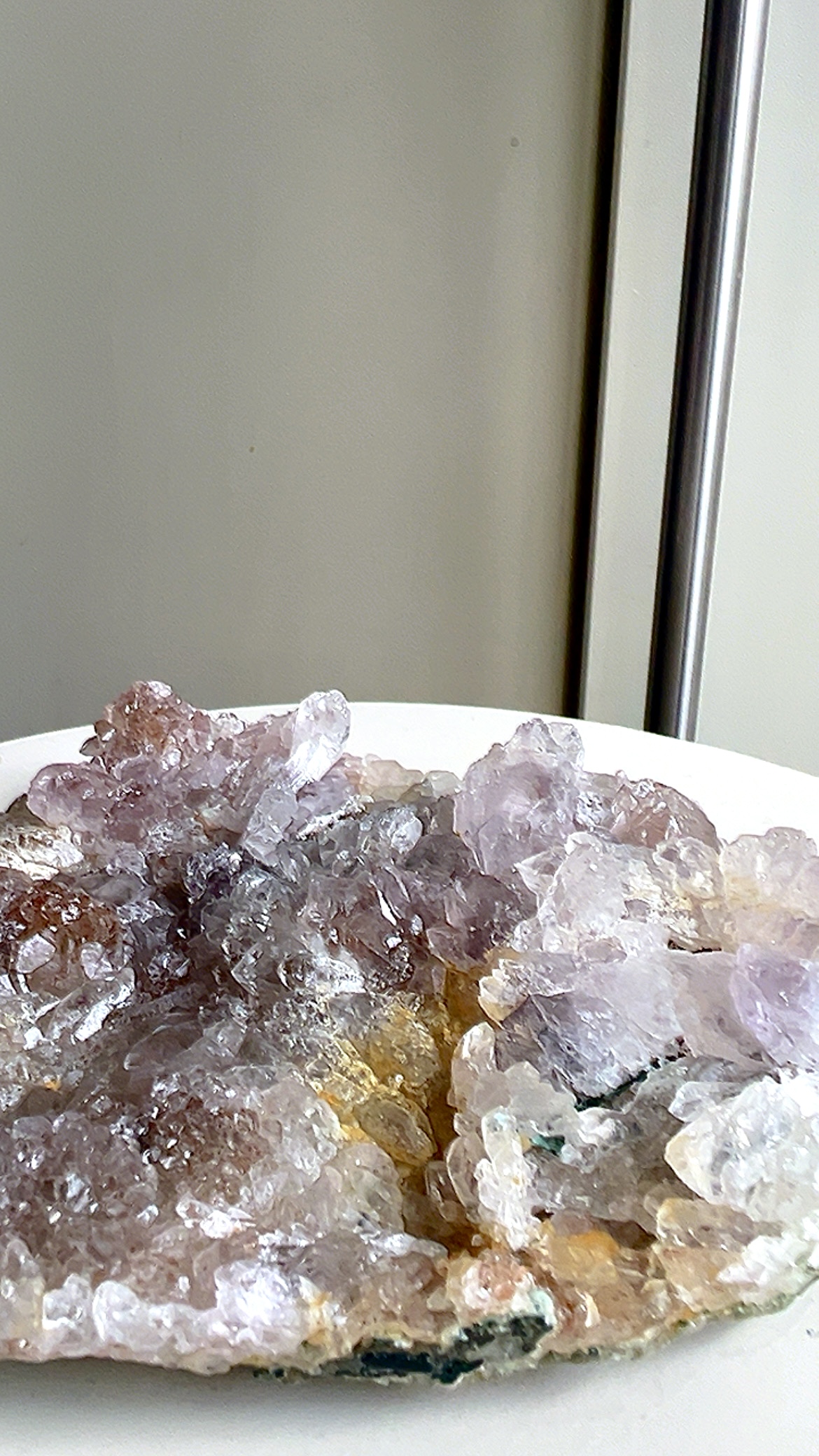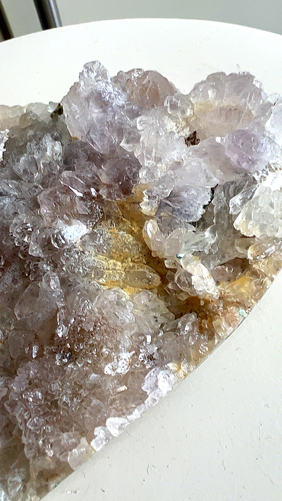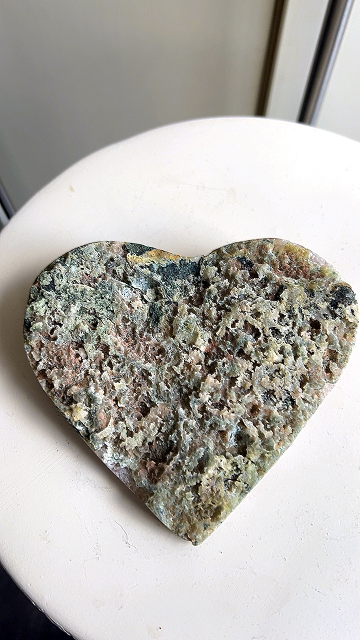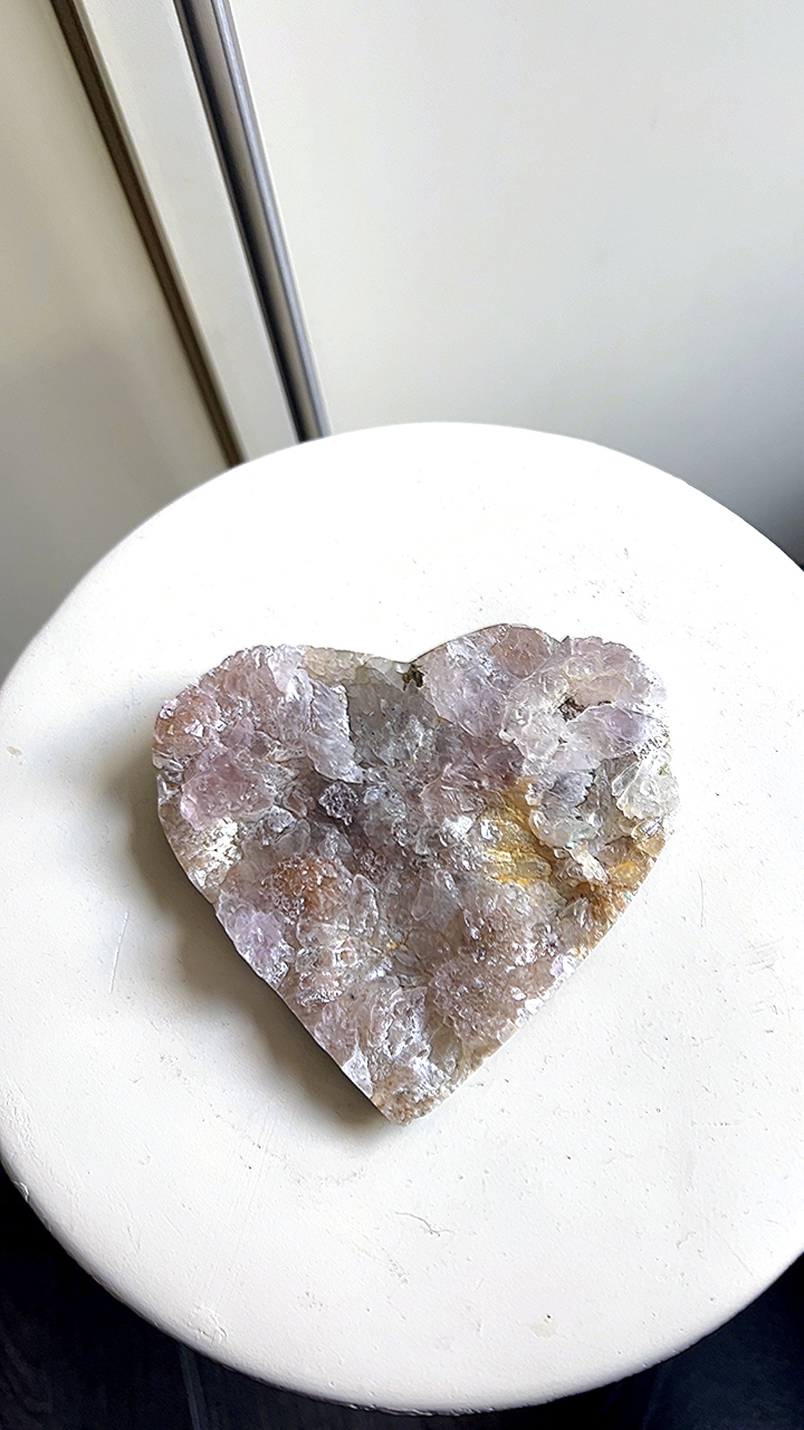 Een Flower Amethist (of Bloem Amethist) is een zeldzame en prachtige vorm van amethist die unieke, bloem- of stervormige insluitsels van hematoide bevat. Wanneer dit in de vorm van een hart wordt geslepen, ontstaat er een krachtig en liefdevol object dat je interieur verrijkt op zowel esthetisch als energetisch niveau.