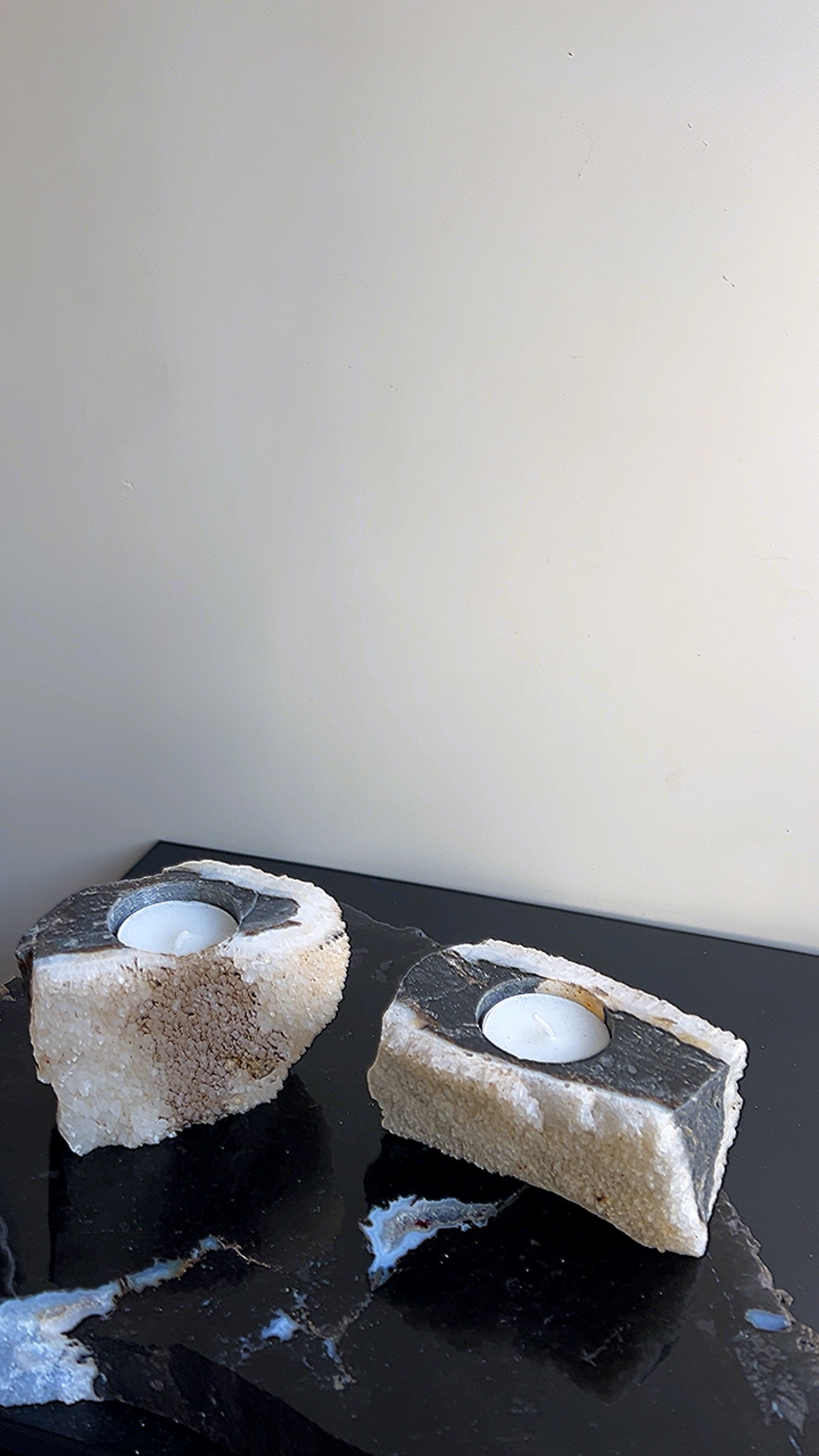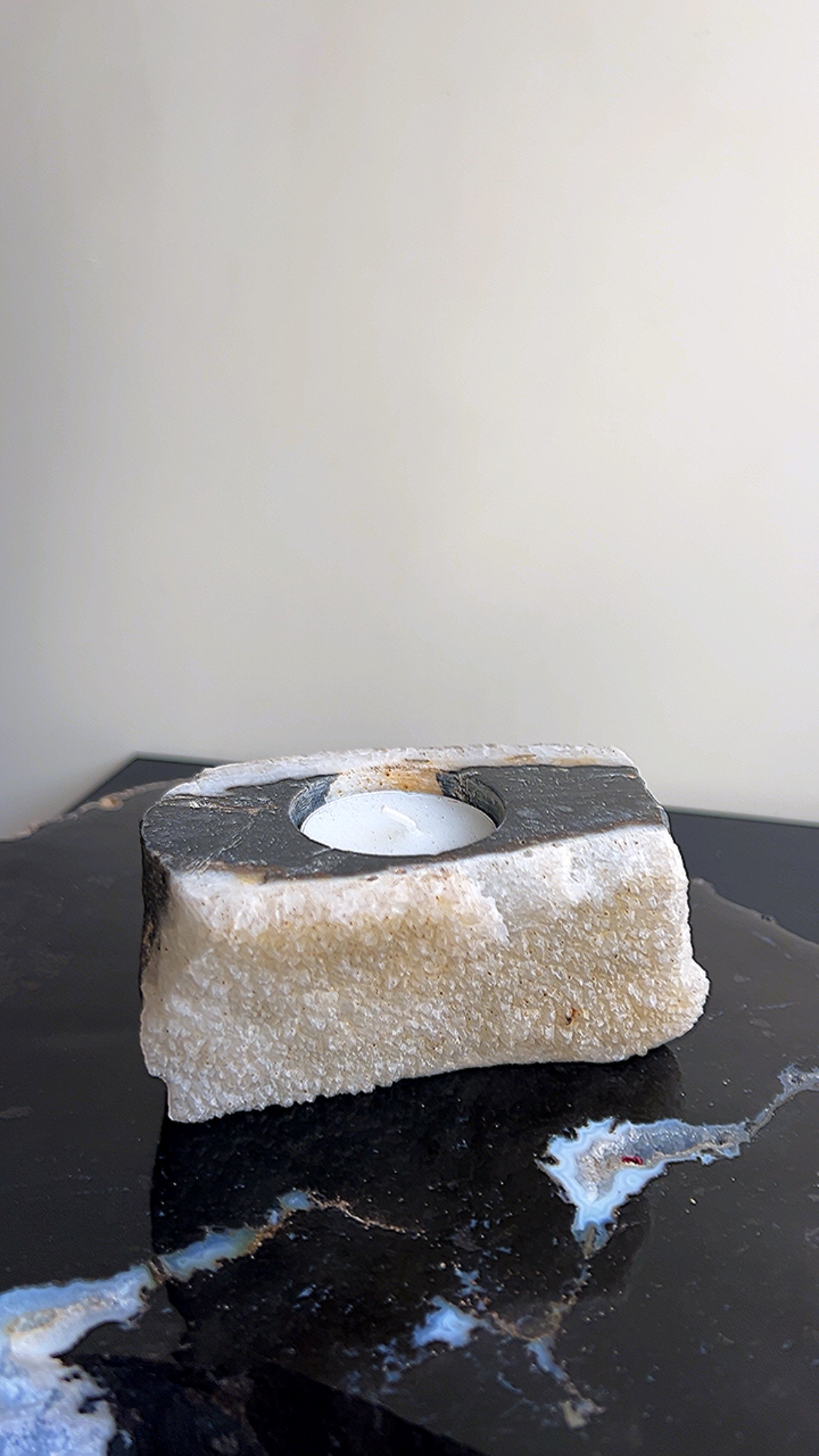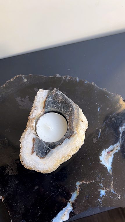 Versteend hout met calciet theelichthouder 2