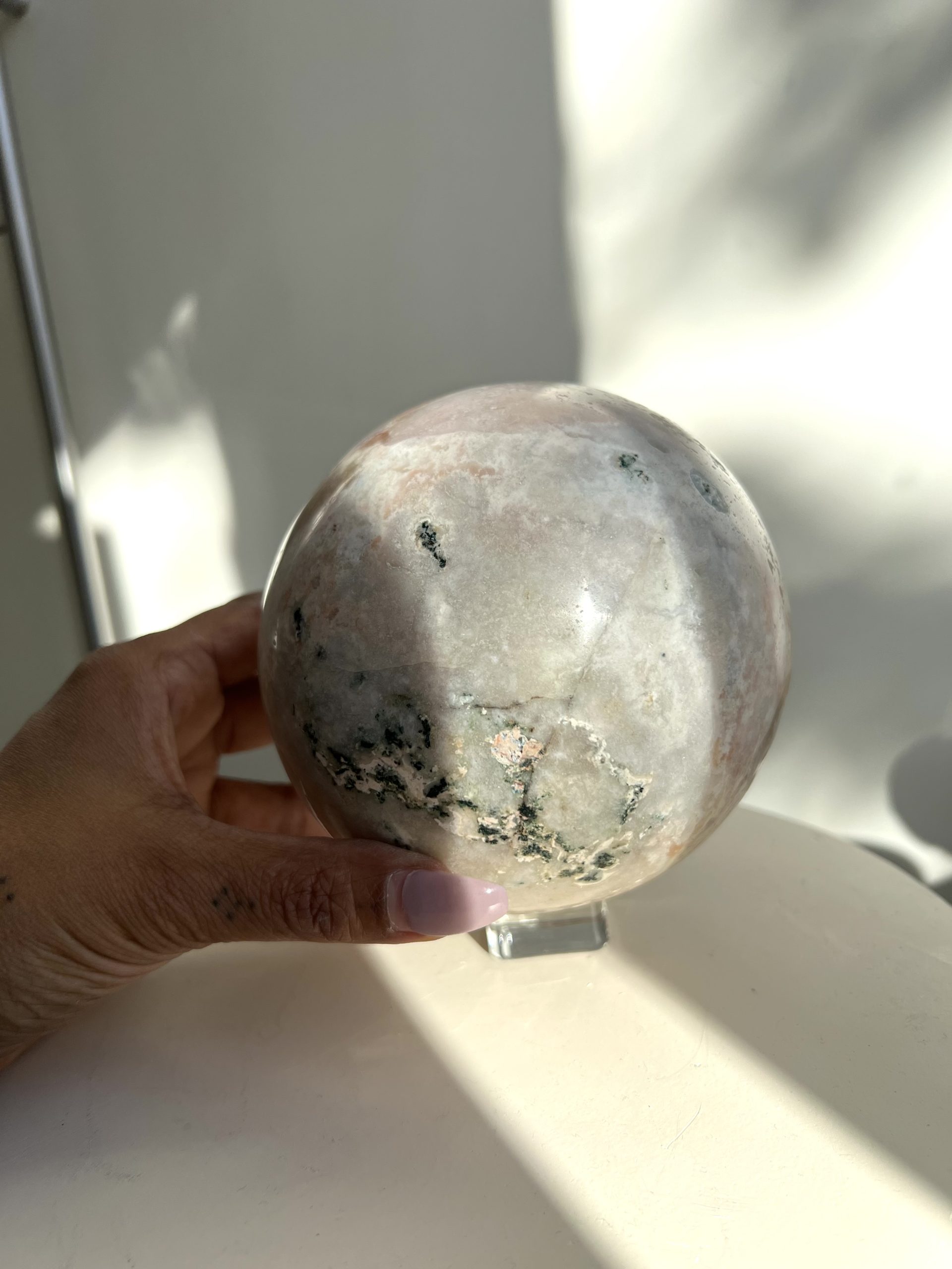 De subtiele, dromerige roze tot lavendelkleuren van de Roze Amethist stralen een zeldzame en zachte luxe uit. De bolvorm accentueert de kristalstructuur, de unieke aders en de glinstering op een manier die geen ander object kan. Het voegt een vleugje verfijnde elegantie toe aan je inrichting.